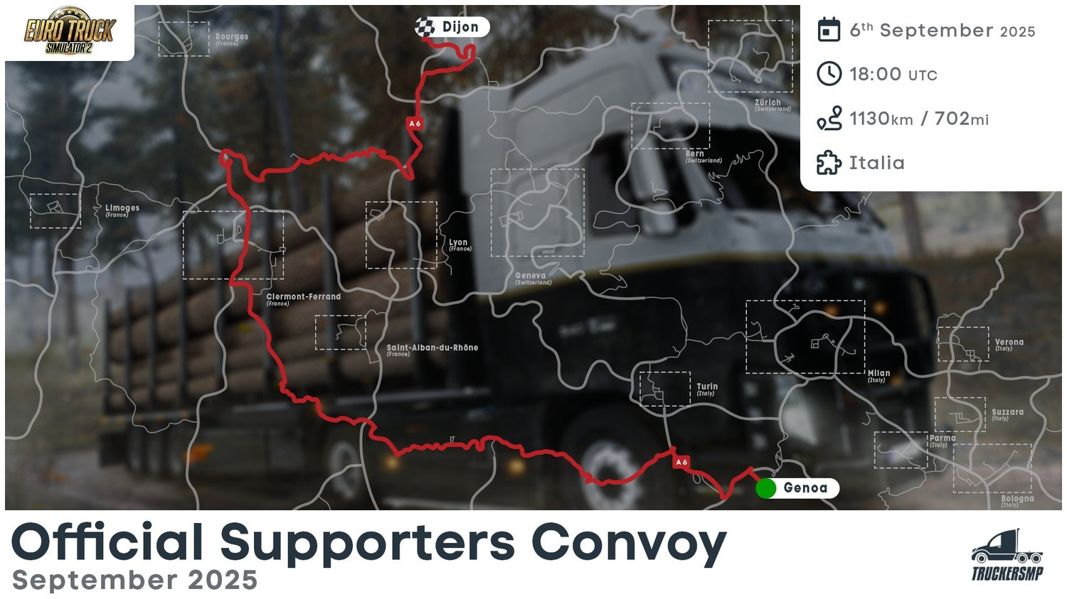 Get ready for our next Supporters Convoy! This time, we're heading back to Euro Truck Simulator 2 for an exclusive supporter-only journey through the scenic roads of France, ending in Italy. Don’t miss out – it’s going to be a great ride!
