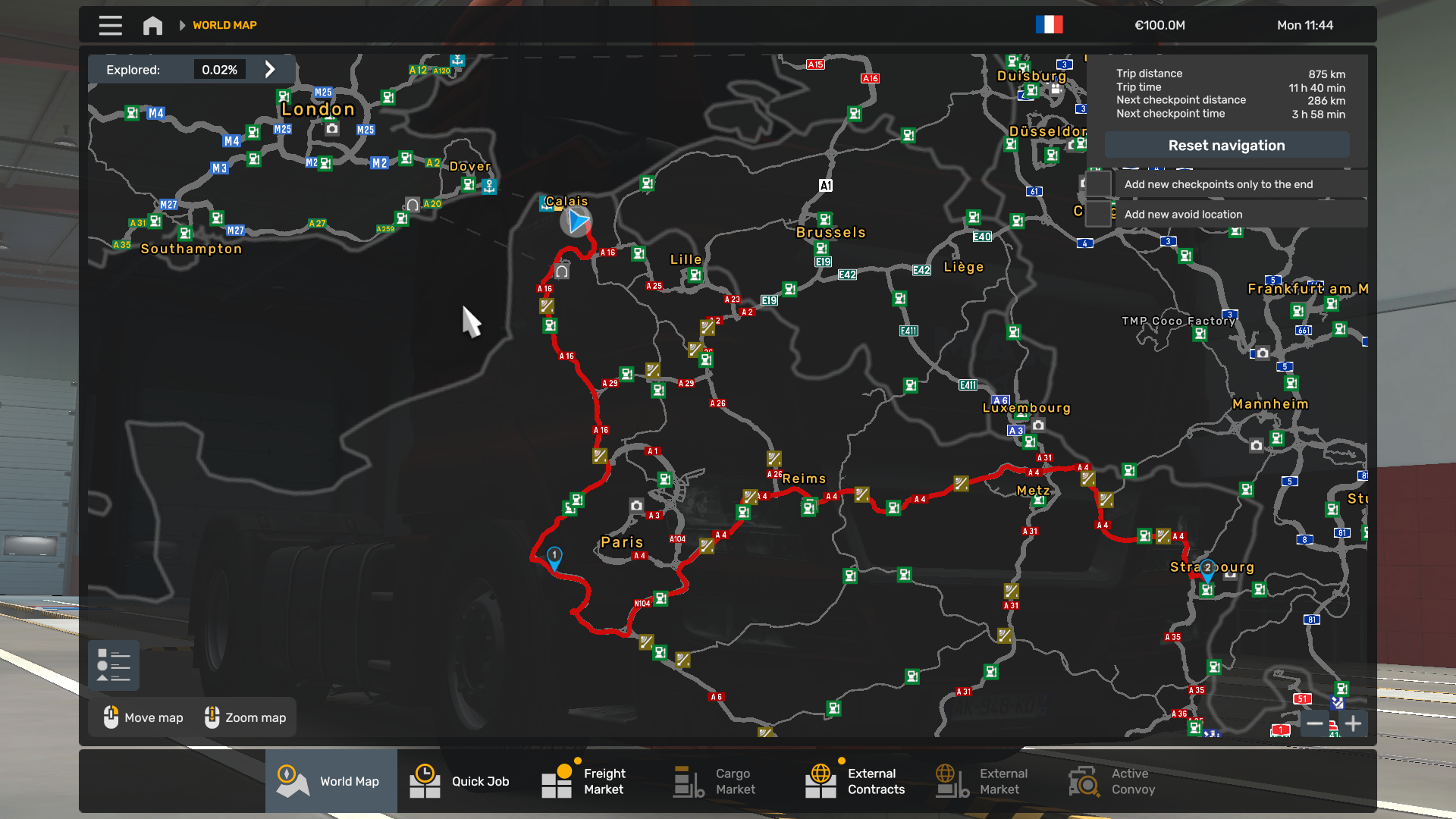 Route: Calais - Strasbourg (875KM)